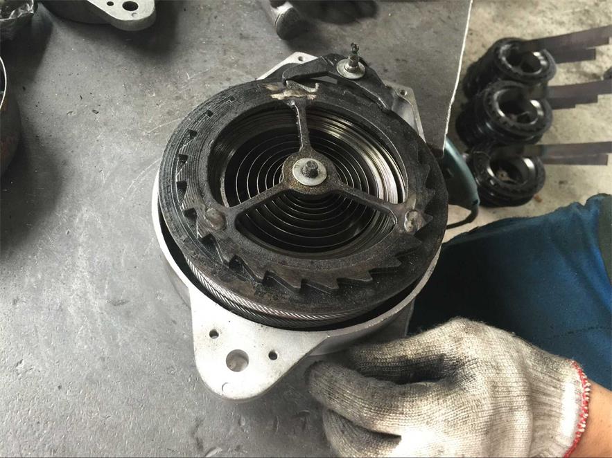在沒有添加黃油之前我們看照片可以看到我們的防墜器鋼板是這樣壓縮在一起的。下面我們來通過照片闡述一下加了黃油之后的圖片效果。