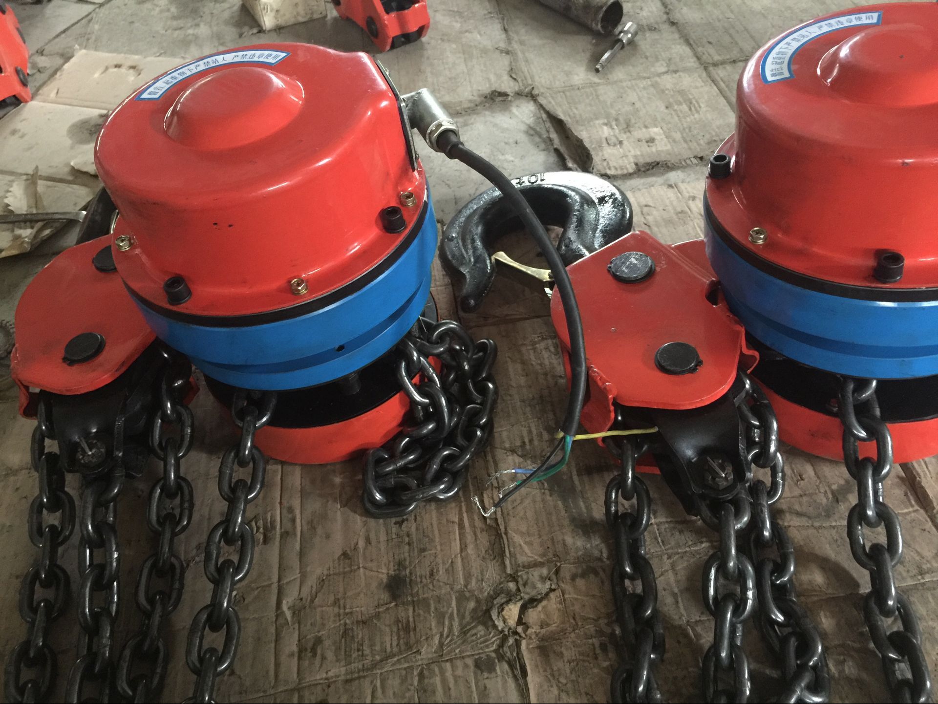 環鏈電動葫蘆起重量一般為 0.1~100噸,起升高度為3~120米。